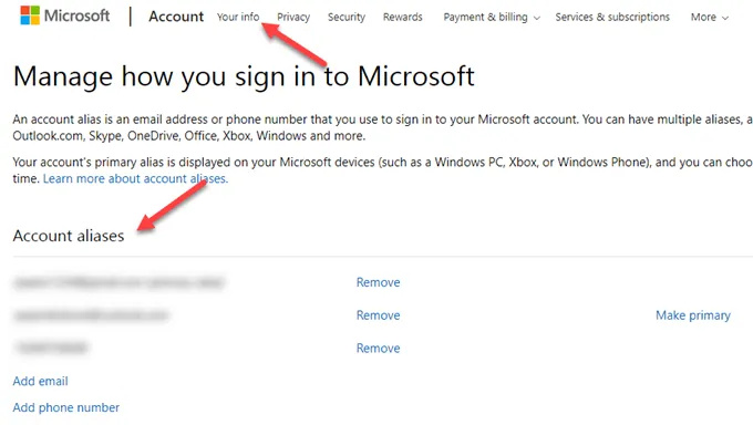 Here, you can type an alias you’d like for your new outlook.com email and click Add alias to add the new email to your account.