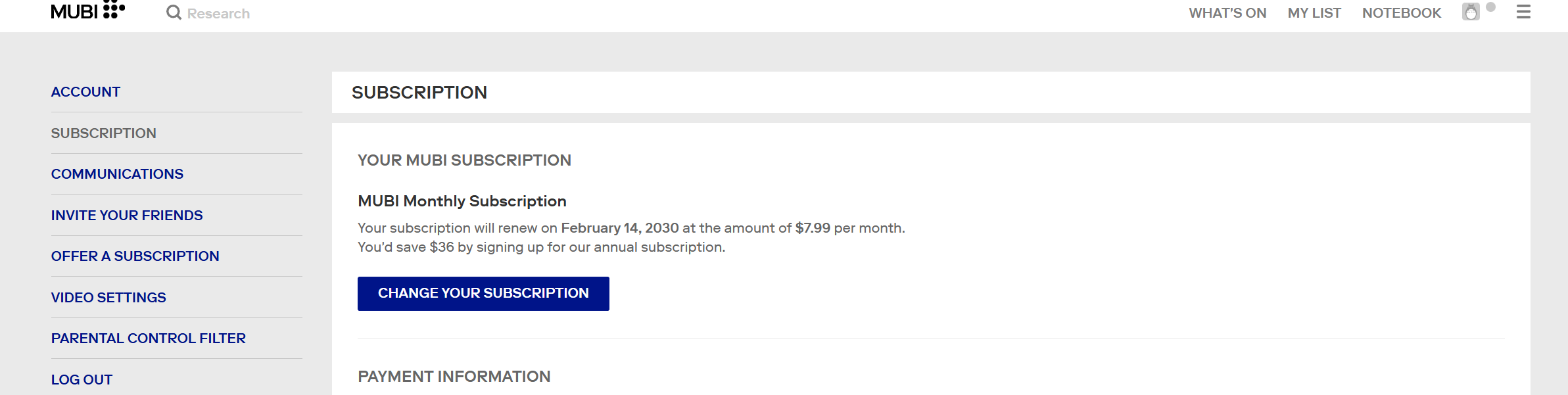 Once logged in, find the referral section. MUBI gives you a personal invite link. Every signup through that link = 30 free days added to your account.