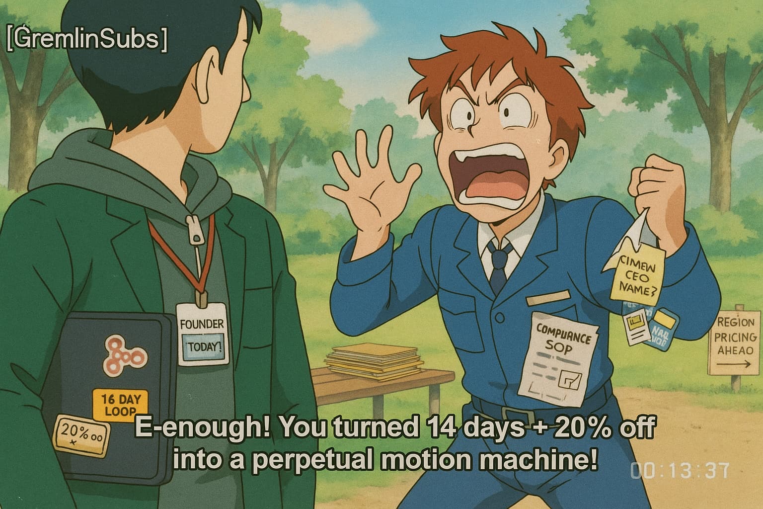 Translation: Normies get 14 days + 20% off. You? You’re running an infinite trial amusement park where every workflow ends in free credits. If there’s a will, there’s a way — and if there’s a workflow, there’s an exploit. ![]()