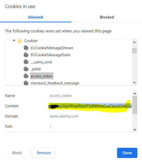 Paste the access_token of Udemy