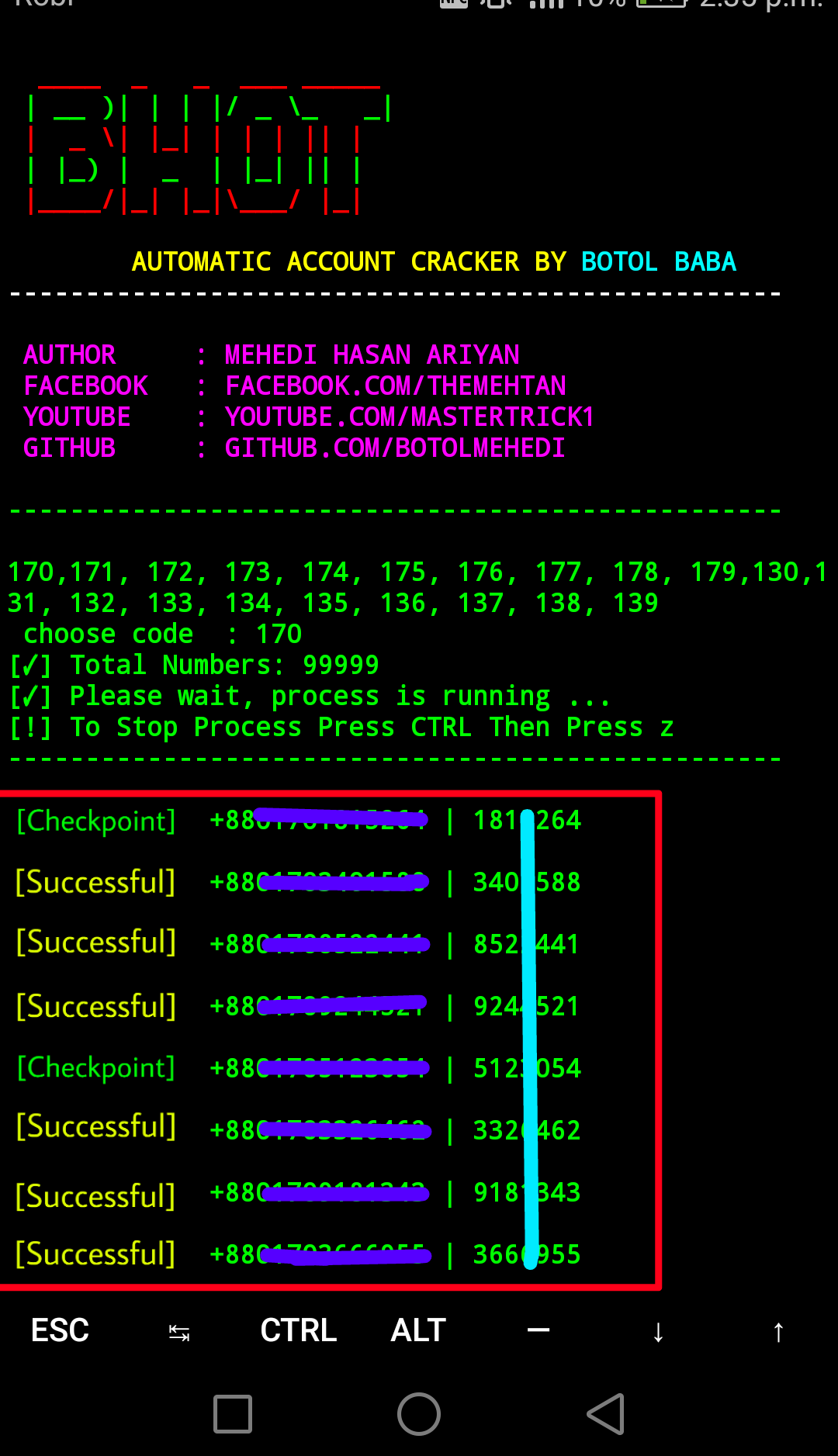 #### Note: No one else will get the account you get. Bix will create randomly numbers here. At present, 6 lakh mobile numbers will be automatically generated during each attack . So when you open the tool for the first time, it will open a little slow. However, in a few days, I will try to increase the number of mobile numbers to 20 lakh, as well as add some more countries here.