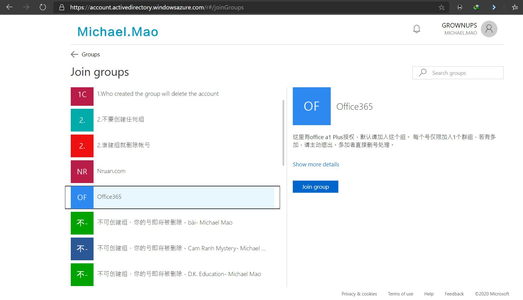 STEP 5: Continue to log in to the following address and click join the Office 365 & Nruan.com Group (IMPORTANT)