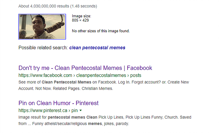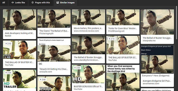 When we uploaded it to Google’s image search, we received disappointing results. Google lead us to a couple sites that used this image for creating a meme. Furthermore, it doesn’t identify the person or the movie .
