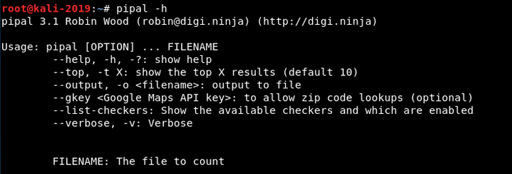 kali > pipal -h