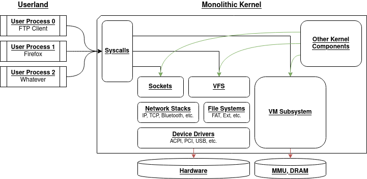 Fuchsia’s micro kernel is called Zircon. It is written in C++. […] Contrary to every other major OS, it appears rather difficult to target the Zircon kernel directly. A successful RCE (Remote Code Execution) on the world-facing parts of the system (USB, Bluetooth, network stack, etc) will only give you control over the targeted components, but they run in independent userland processes, not in the kernel. From a component, you then need to escalate privileges to the kernel using the limited number of syscalls you can access with the handles you have. Overall, it seems easier to target other components rather than the kernel, and to focus on components that you can talk to via IPC and that you know have interesting handles.
