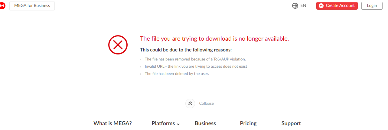 error: **We’re sorry. You can’t access this item because it is in violation of our [Terms of Service]