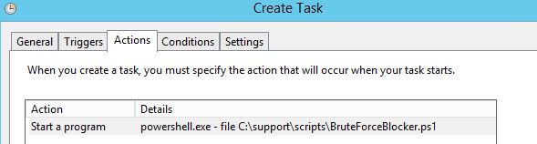 - powershell.exe -file C:\support\scripts\BruteForceBlocker.ps1