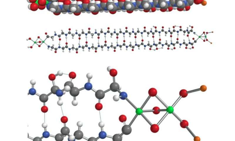 Proteins are considered by chemists to be quite complex, which means a lot of things would have to happen by chance for protein formation. For hemolithin to have formed naturally in the configuration found would require glycine to form first, perhaps on the surface of grains of space dust. After that, heat by way of molecular clouds might have induced units of glycine to begin linking into polymer chains, which at some point, could evolve into fully formed proteins. The researchers note that the atom groupings on the tips of the protein form an iron oxide that has been seen in prior research to absorb photons β a means of splitting water into oxygen and hydrogen, thereby producing an energy source that would also be necessary for the development of life.