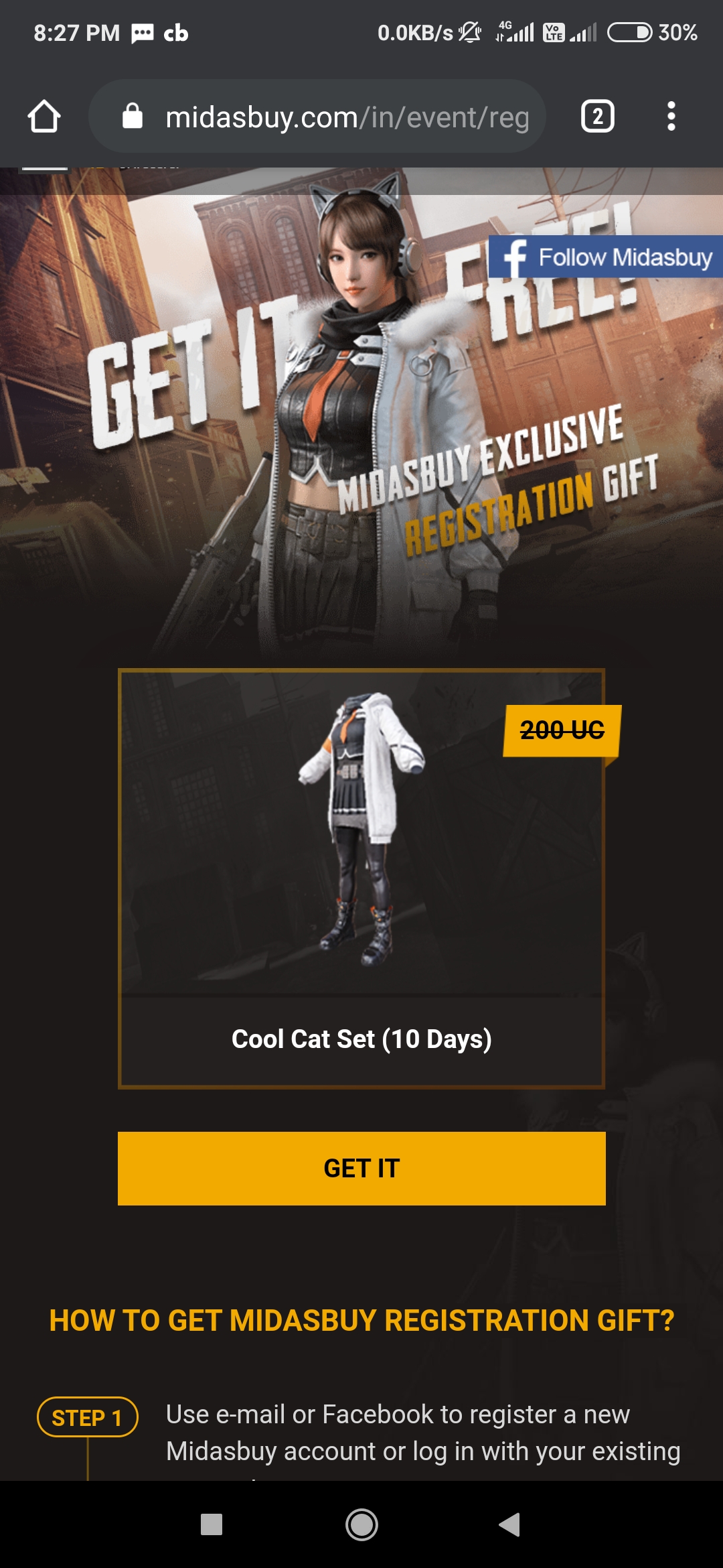 Click on Get and login with Facebook which used for pubg game.