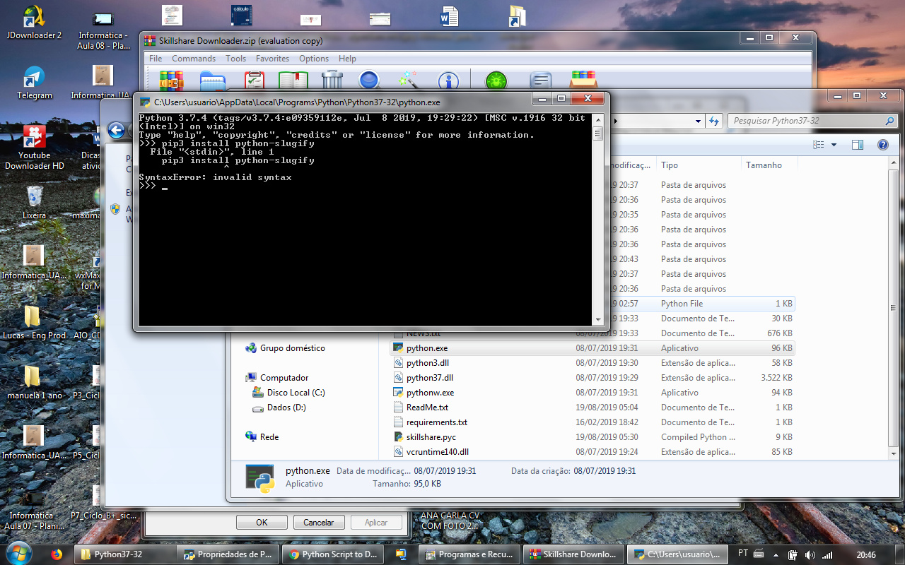 I have installed Python 3.7 in my pc and on running commands it prompts me an error.