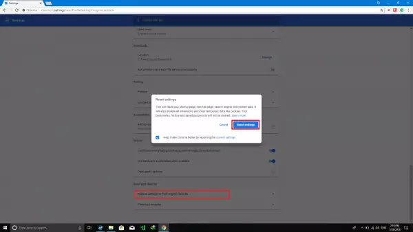 Click on Reset, and this will reset your Google Chrome browser. When you use this option, it will reset your profile to the post-fresh-install state.