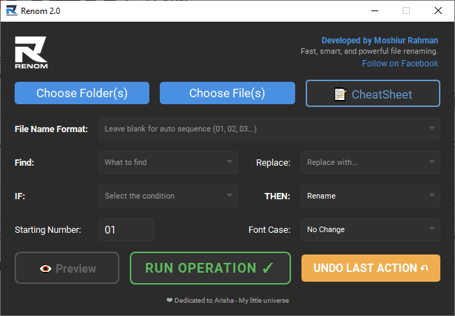 Free Batch Renamer with Variables, Conditions, and a CheatSheet Built In