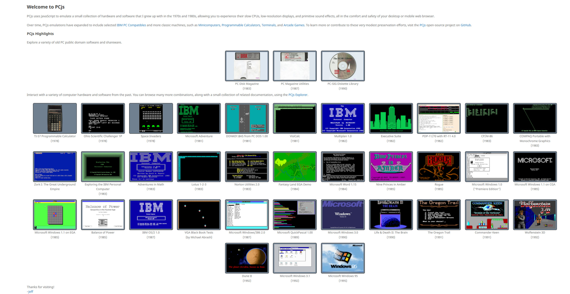 The beauty: These are full OS emulations, not screenshots. You can click, run programs, break things, reboot.