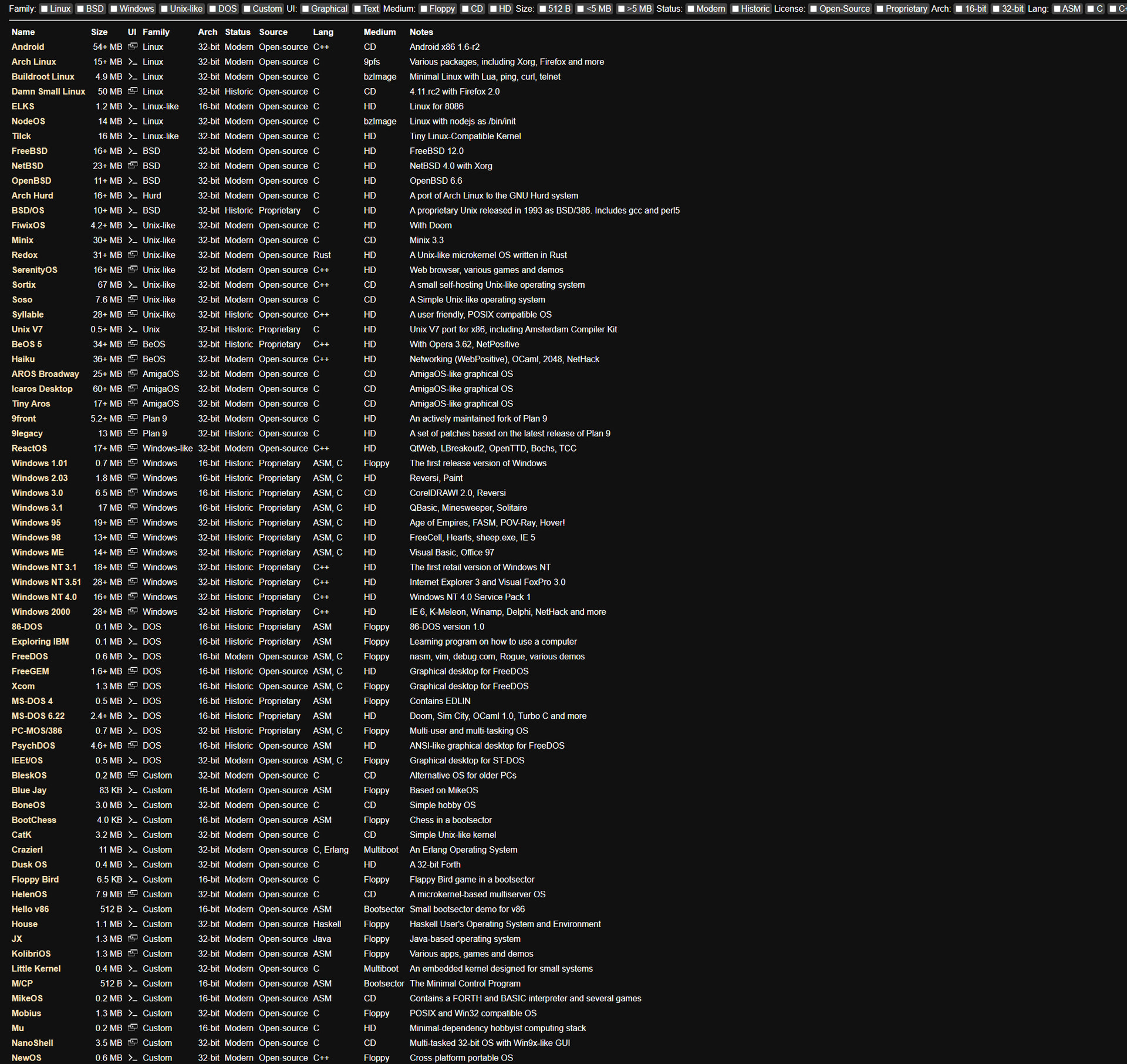 What it runs: Windows 1.0-98, MS-DOS, FreeDOS, Linux (Arch, Buildroot), Unix variants (FreeBSD, NetBSD), weird OSes (KolibriOS, SerenityOS, ReactOS).