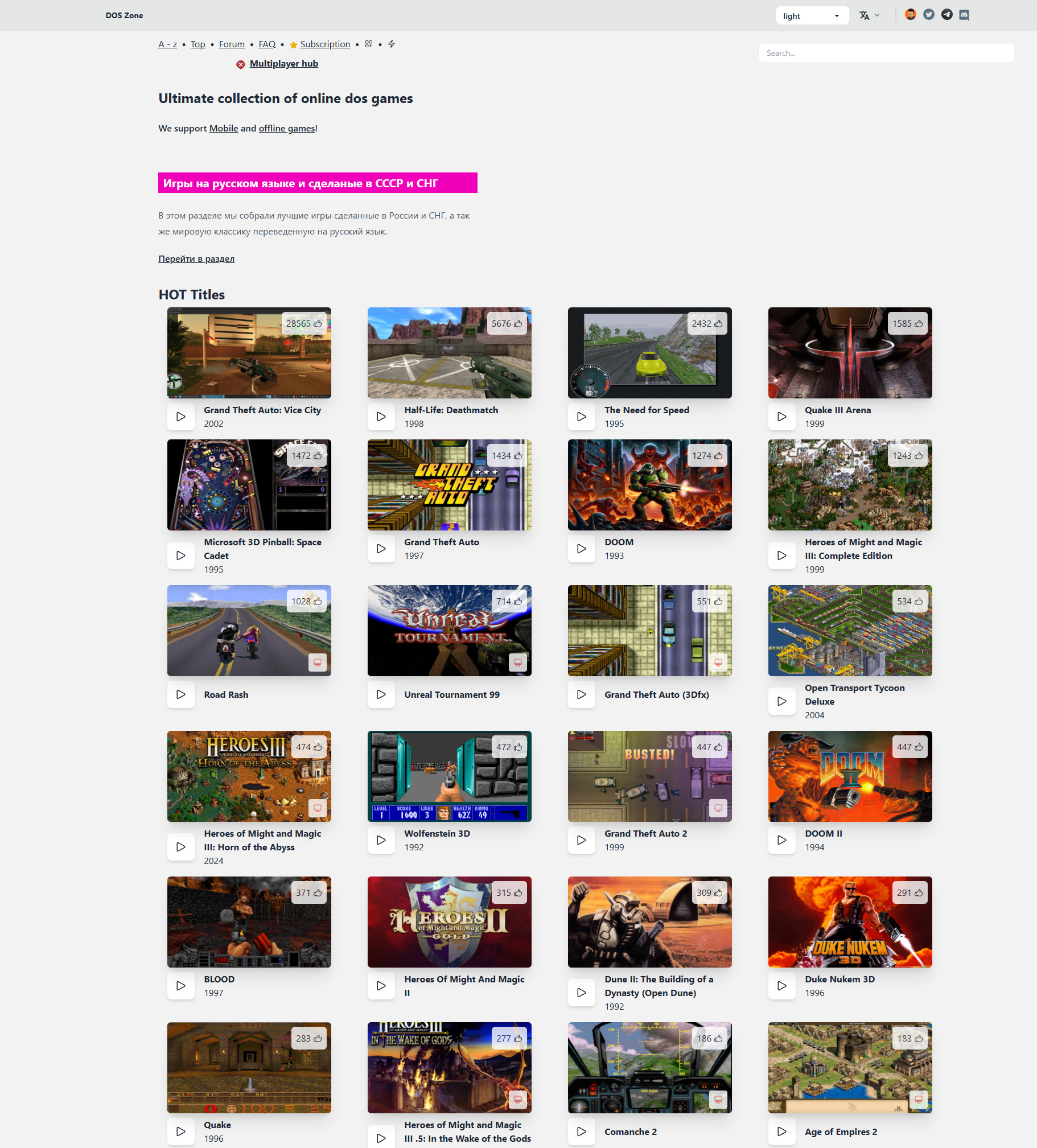 How it works: DOSBox emulator running in browser. Click game, it loads, you play immediately.