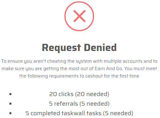 So, first of all, EarnAndGo.co baited me in by promising to pay me $50 just for signing up and by claiming that I could hundreds of dollars per day with it.