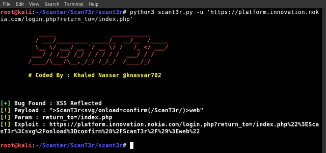 scant3r is a module-based web security tool, our goal is to make customizable tool with providing many functions and features that what you need for write a security module for an example (cookie parser/http request class/opts parsing etc ..) to make write a security module easy and simple for saving your time also we made it customizable as possible for example you can change what you want for example options parser you can change/add more options by a config file and scanning map content_types help message logos etc …