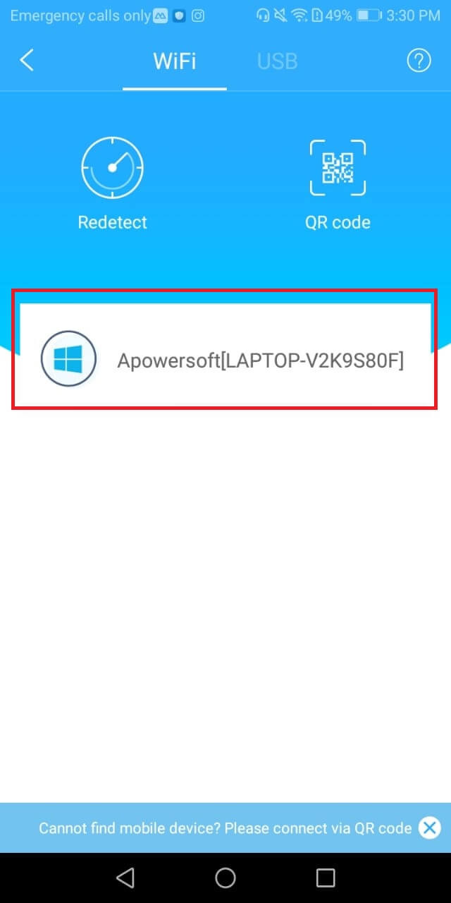 Step 2- Open apower mirror in windows pc and click on the wifi connections tab for mirroring using wifi.