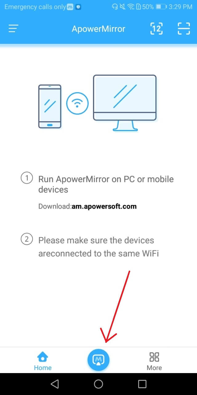 Step 3- Open apower mirror app in your android phone and click on the small button in the bottom that says M .