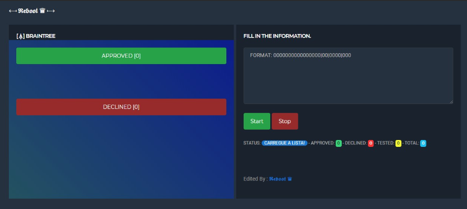 A Cc Checker by Reboot13 This is BRAINTREE checker This checker authenticate/charge depends on what type of site you use.