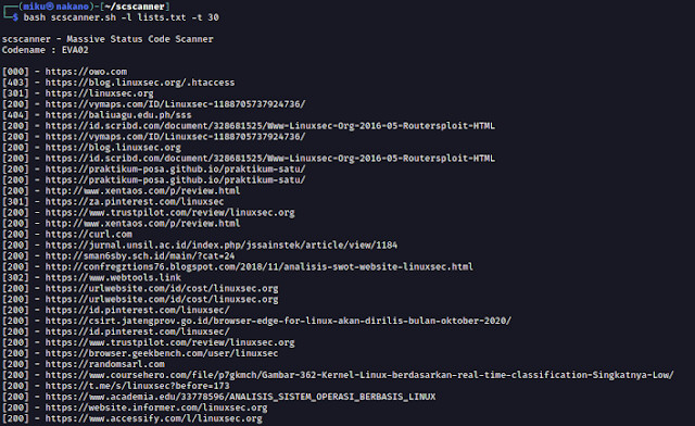 Scscanner is tool to read website status code response from the lists. This tool have ability to filter only spesific status code, and save the result to a file.