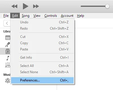 - Launch the iTunes app, click on Edit, and select Preferences .