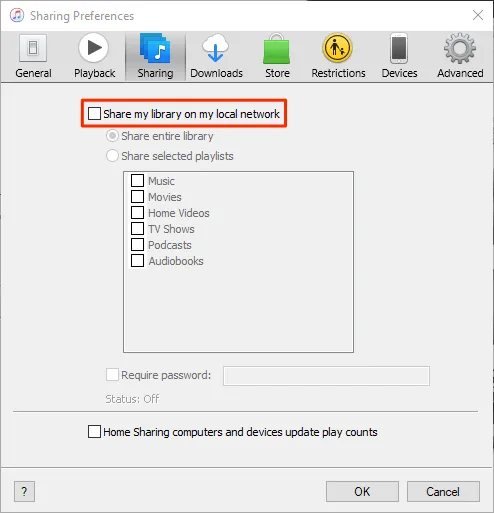 How To Disable iTunes Library Sharing