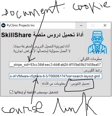 The first field you put the cookie, the second one you put the course link, this is the tutorial, i know itβs in arabic but you can understand easily how it works by just watching