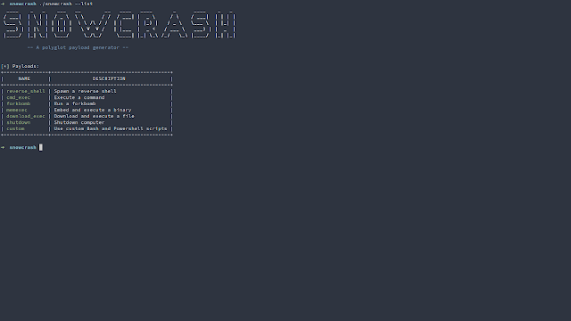 ./snowcrash --list - Generate chosen payload: