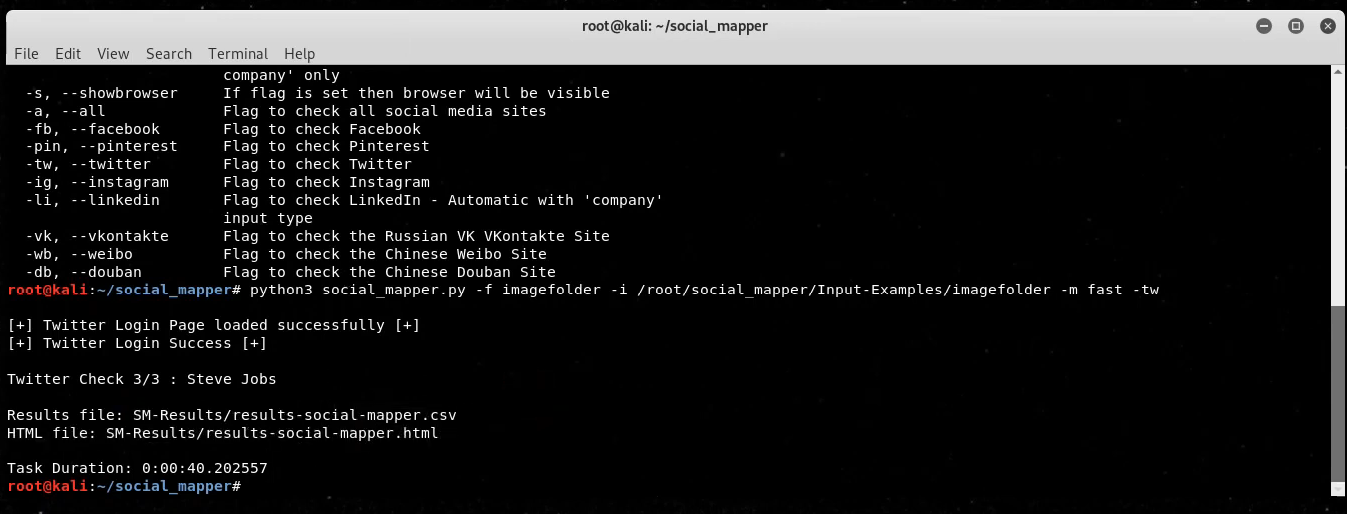 Social Mapper is primarily aimed at Penetration Testers and Red Teamers, who will use it to expand their target lists and find their social media profiles. From here what you do is only limited by your imagination, but here are a few ideas to get started: