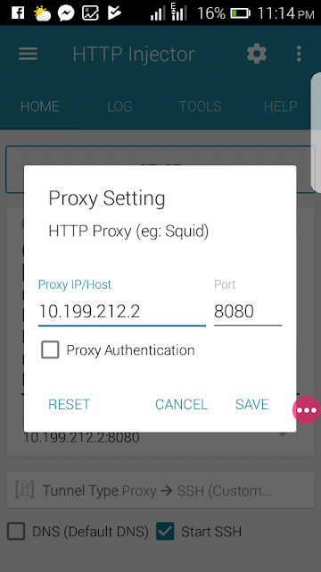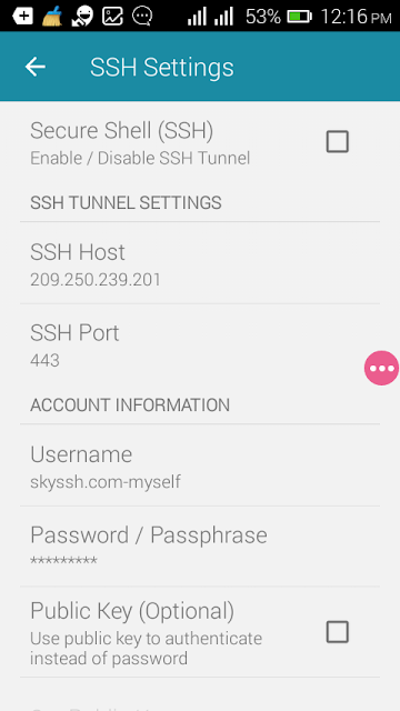 After creating the account, open your http injector, click on settings and then ssh settings.(Secure Shell)