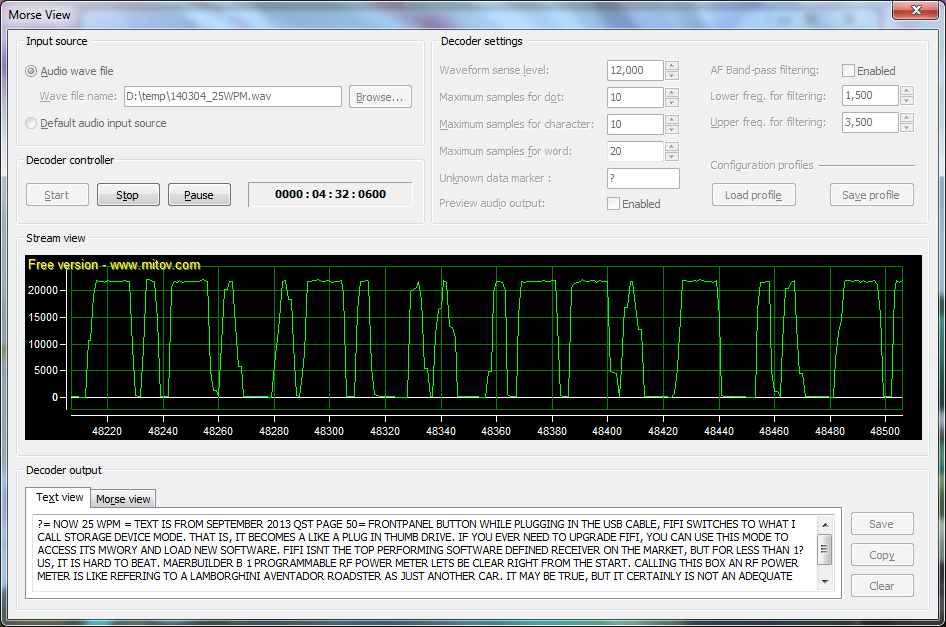 Morse View - 5 WPM and 15 WPM real-time Morse code decoding