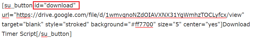 Now, come inside your post or page where you want a download button with a timer. Create a download button using “Shortcodes Ultimate. Add id=”download” in the button shortcode like this.