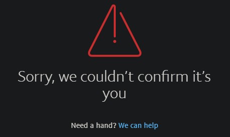 Now everytime I try to recover my password using my email, instead of sending me a recovery email paypal says “Sorry, we couldn’t confirm it’s you”.
