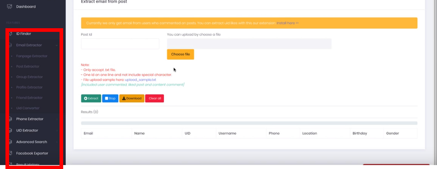 This tools called as all in facebook marketing tools.The best think is that , you can extract thousand of mail within a minutes.