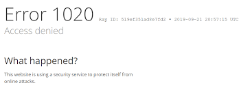 While visiting a site protected by Cloudflare, error 1020 “ Access denied ( Error : 1020 )” indicates you’ve violated a Firewall Rule. When this happens, you’ll see the error “ Access Denied ( Error : 1020 )” and your request was blocked by the filter based Firewall rule on the site.