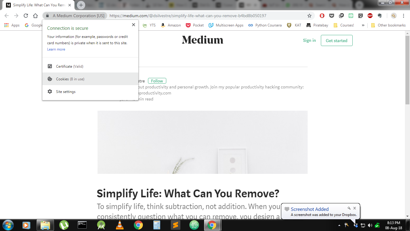 - Go to medium website and then click on the ‘Lock’ icon beside the web address.