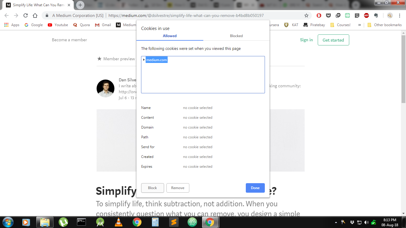 - Then, a box open and shows “medium.com” under “allowed” column. Select that and click the “block” button below.