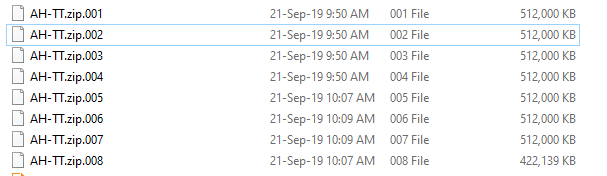 I have some file, quite important. I’m downloading them from a website. There they told to Extract the file with 7-zip( software ). But 7-zip doesn’t work here. Only the first one AH-TT.zip.001 is extracting. ( cause something.zip.001 is a zip format )