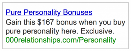 This ad appears when people search for the product ‘pure personality’ in Google: