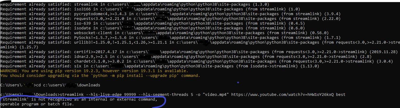 3] Now you have to install the YT downloader tool called “streamlink” by using the following PIP command: