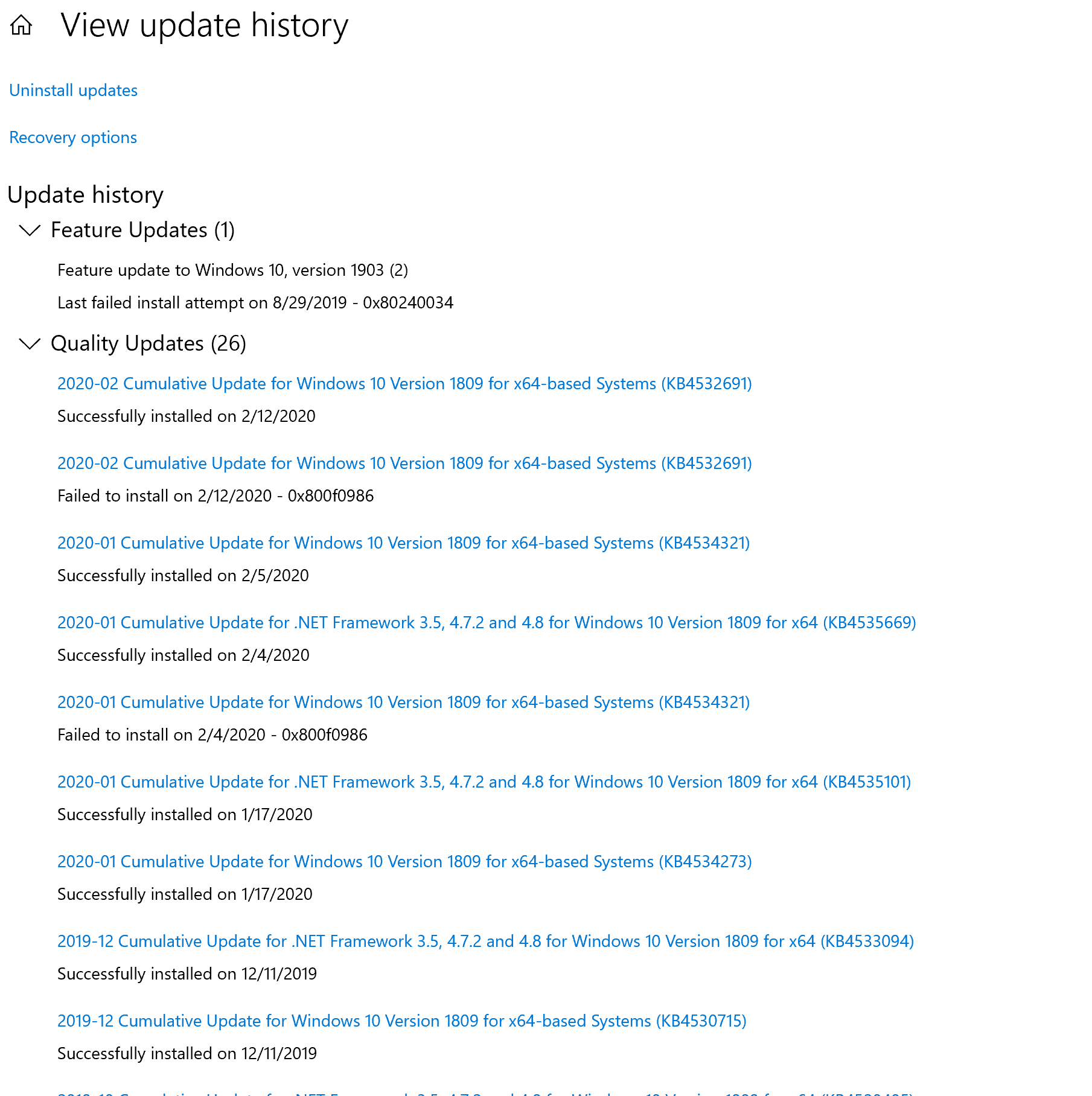Remember, Version 1909 is ongoing, and Version 1903 is the most recent.
