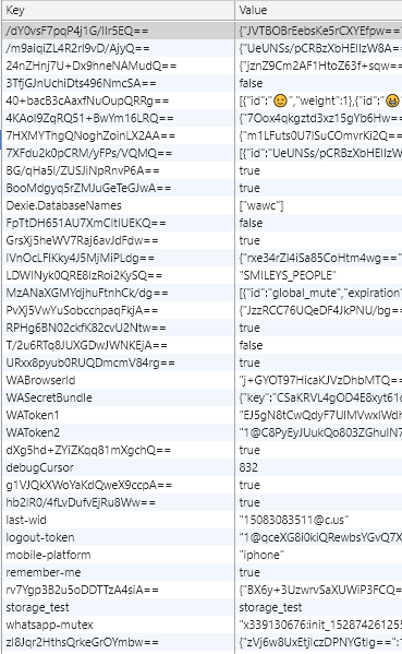 When I delete these cookies, close the browser and start WhatsApp web, they get created again. So, it is not these cookies that are controlling the above behavior. I then looked at browser’s local storage. WhatsApp web seems to be storing lot of data in browser’s local storage and it looks like this: