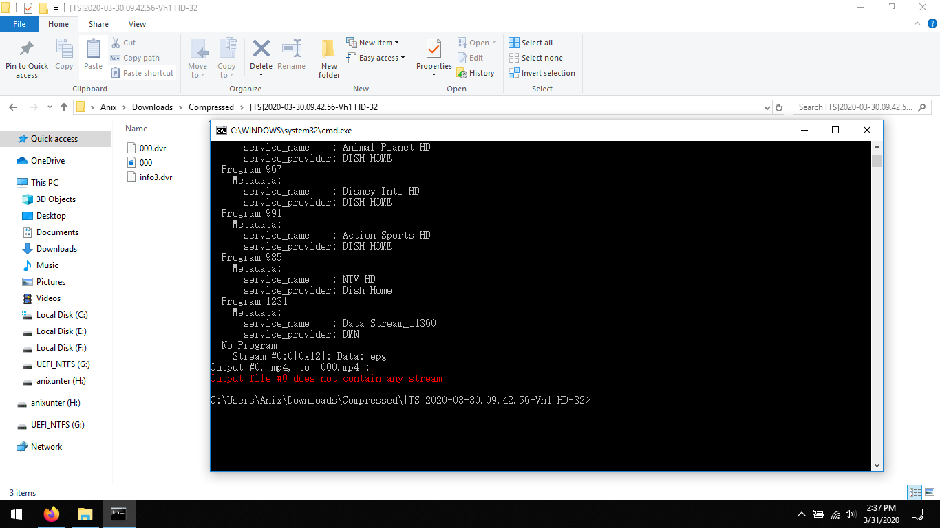 The set top box is from Nepal, from Dish Home, Company. i have watched videos in youtube, but most of the videos are from the Indian Set top box, where, the “ts file” can be played using potplayer or klite. But this set top box, is very highly encoded, even with ffmpeg i get this error. let me show you.