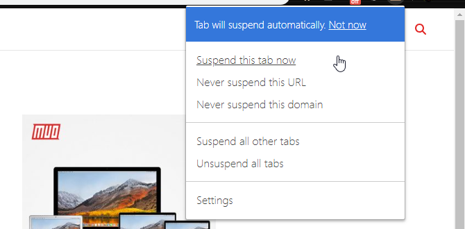 The Great Suspender gives you quite extensive control over how tabs are suspended. You can whitelist specific sites, so if you always need your email inbox open in a browser, The Great Suspender is a good option. To reload a suspended tab, click anywhere in the window.
