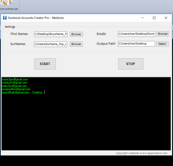 Facebook Account creator bot is a free tool that allows you to create Facebook accounts. It comes with optimized scripted patches so that everything will work smoothly. It features a really snappy, fast and clean user interface and no hidden features or costs.