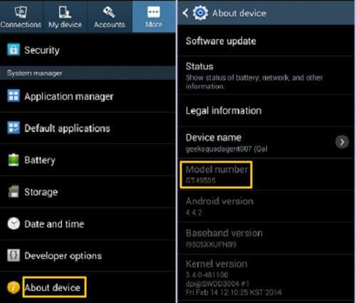 Step 1. Identify the model number of your device. For example, if you are using Samsung S3, you may go to “Settings” > “About phone” > “Model number” and find the model number.
