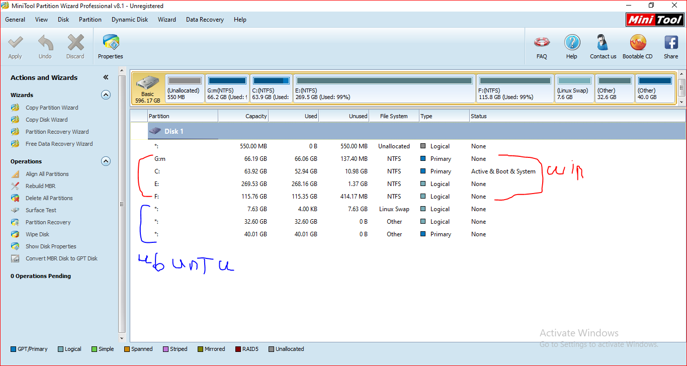 thanks i access ubuntu , but win 10 don’t open so i come back and active c : partition from ubuntu os , i will plug the debian os , so laptop will read ubuntu os and show me Grub screen then i can choose win10 or ubuntu
