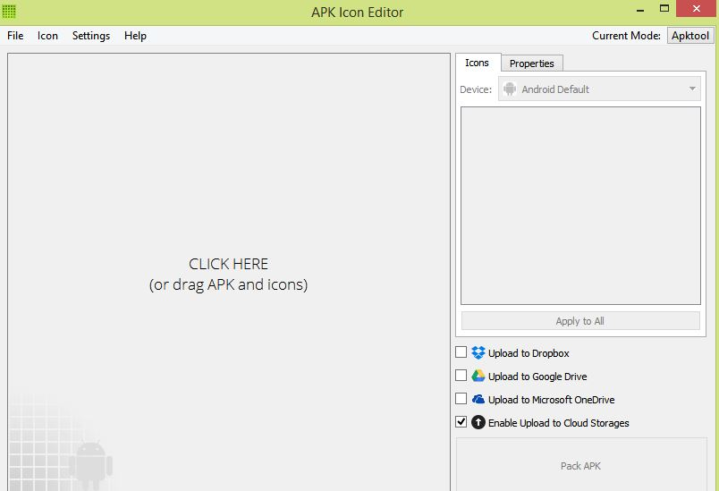 5: open APK Icon Editor and drag the icon of your choice to the space provided as shown in the image below.