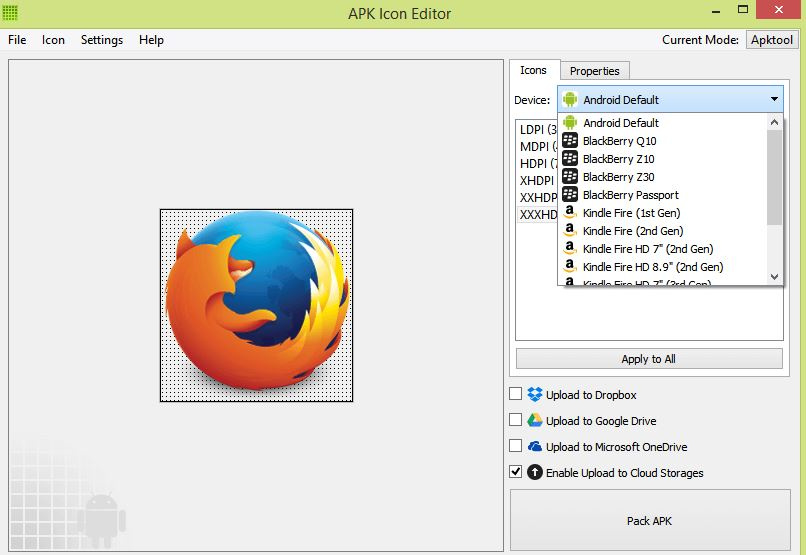 6: on the righ frame of the interface, click on the “ApkTool”, select “Properties” and choose the file of your choice from the drop-down list.